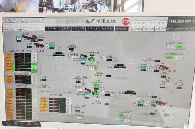 礦山生產管理系統對整條骨料生產線進行自動化遠程控制和設備運行狀態、工藝過程、料位信息的監控和監測,以中控室為指令和調度中樞,實現整個工廠生產、銷售層面的集控與聯動。
